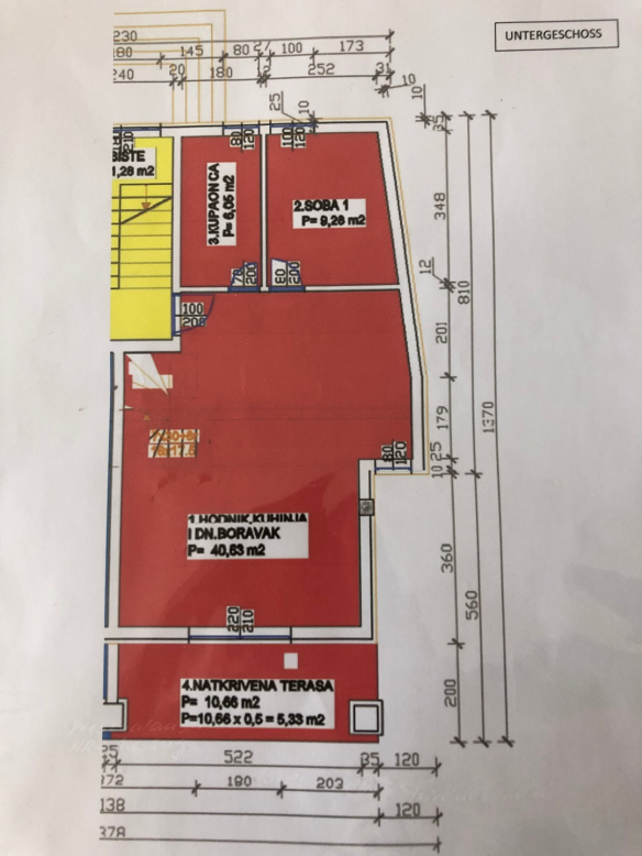EG: Küche, Esszimmer, Gästezimmer, Bad mit Dusche, BD und WC, Terrasse.